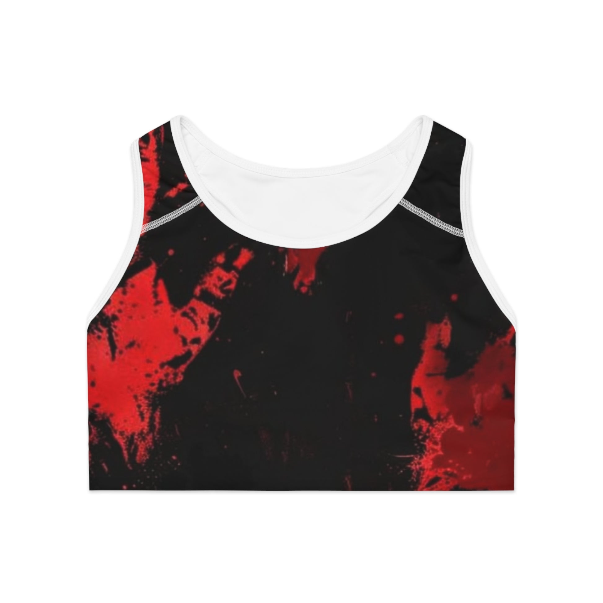 Not for the faint of heart. This sports bra is soaked in crimson attitude and made for the fierce, the fearless, and the fitness-obsessed who don’t mind a little mess with their grind.