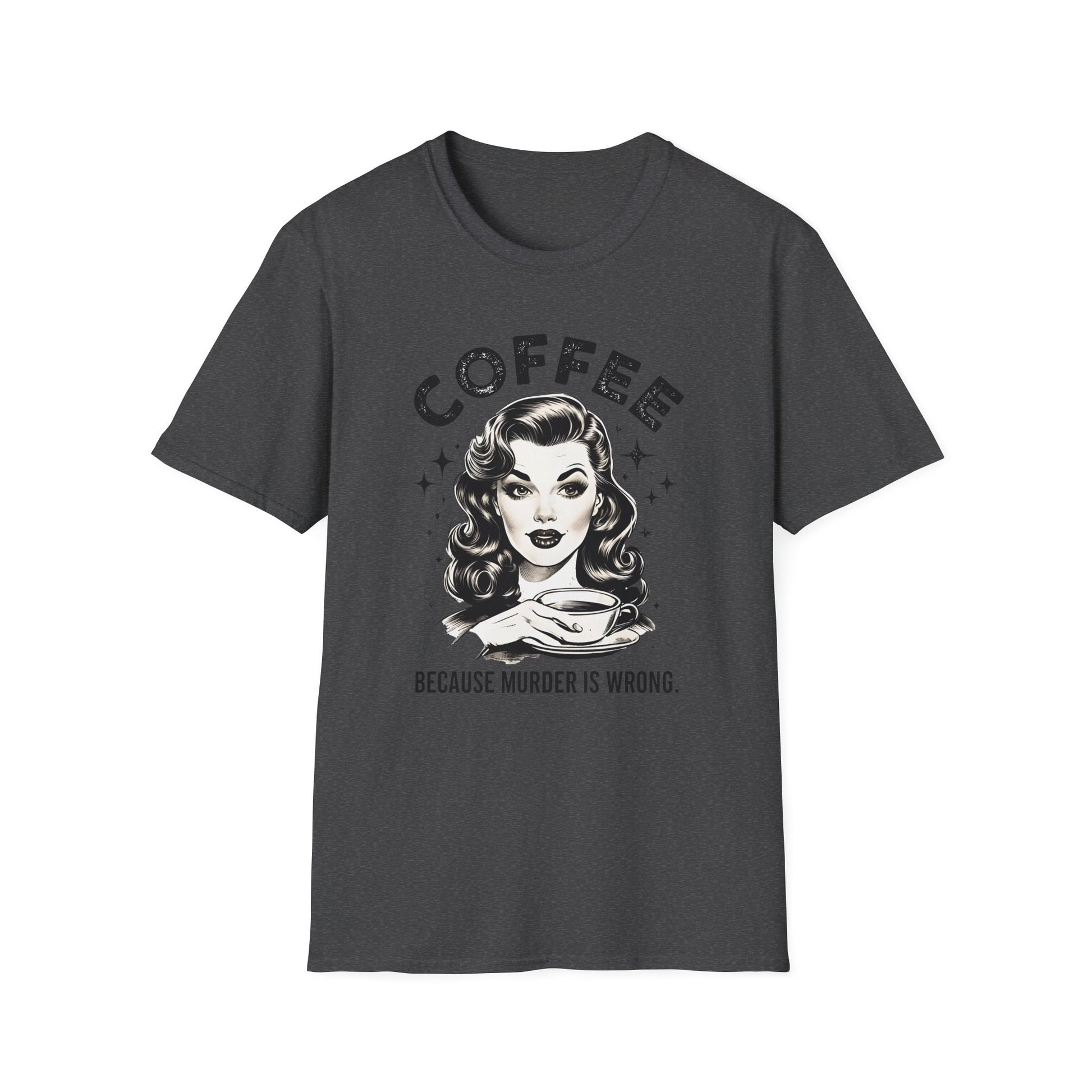 Funny Coffee T-Shirt – "Because Murder is Wrong" Unisex Softstyle™ Tee