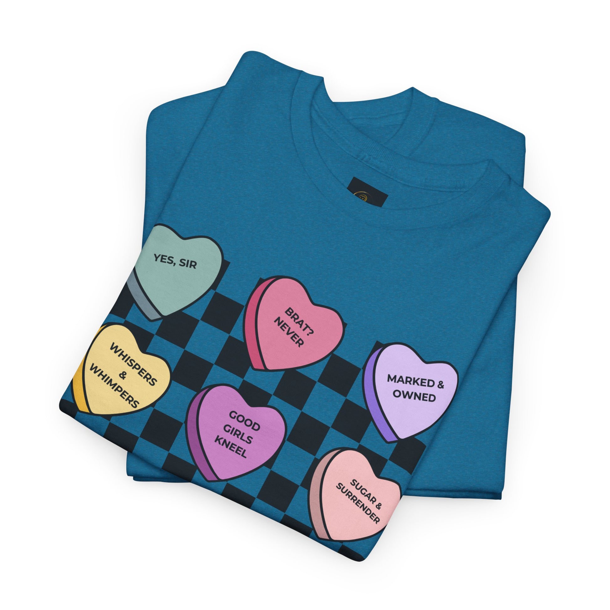 .Welcome to the Good Girl Collection—where obedience is pleasure, and submission is a beautifully bruised art. This Unisex Heavy Cotton Tee isn’t just clothing; it’s a silent contract, a whispered vow wrapped in soft fabric and filthy intent. Scrawled across candy hearts, the truth is laid bare: Brat? Never. Good Girls Kneel. Because a real good girl knows her place—on her knees, waiting, aching, ready to be claimed. Perfect for those who crave control, who shiver under a firm hand, who know that surrender is the sweetest sin. Wear it like a promise. And let them decide if you’ve been good enough to deserve what’s coming next.
