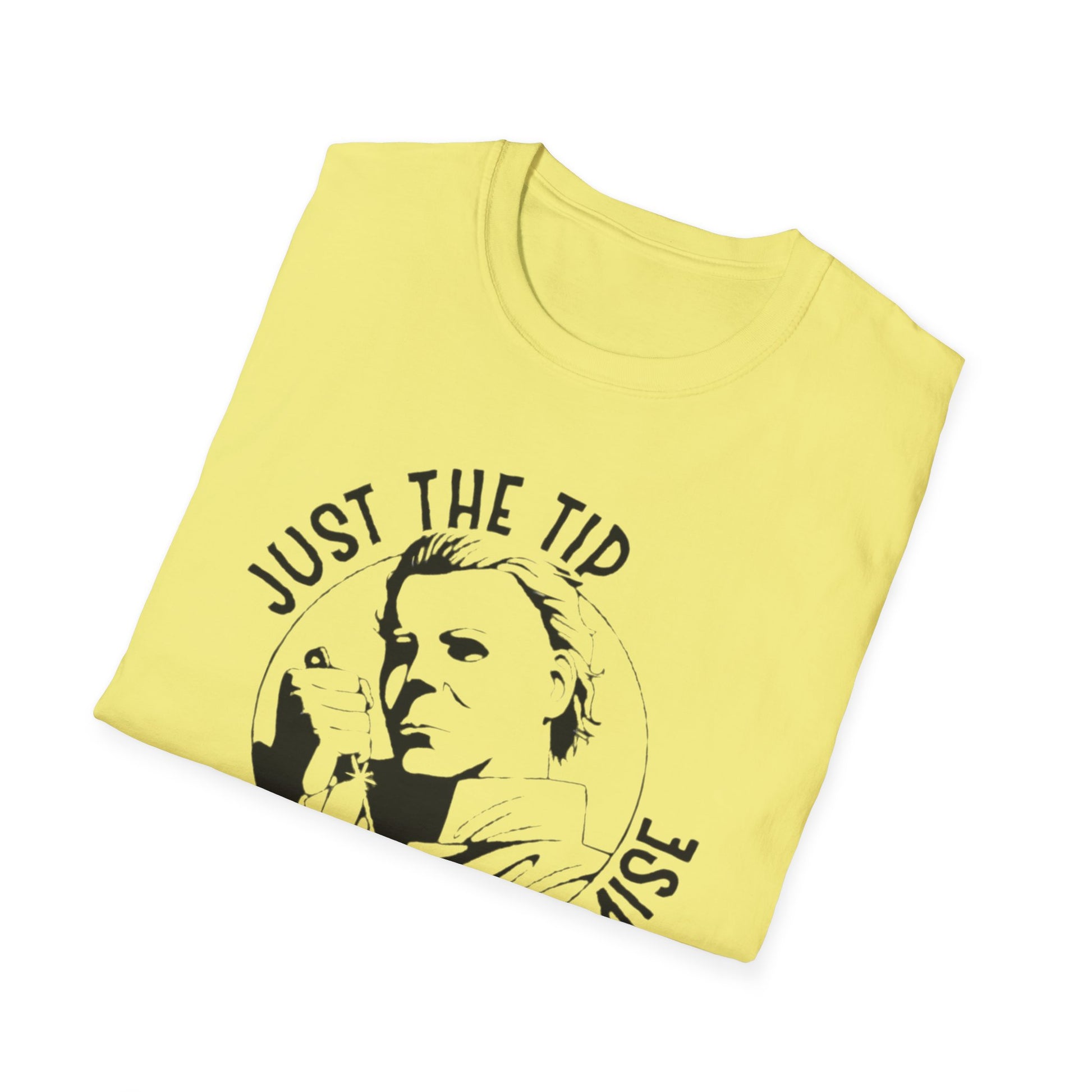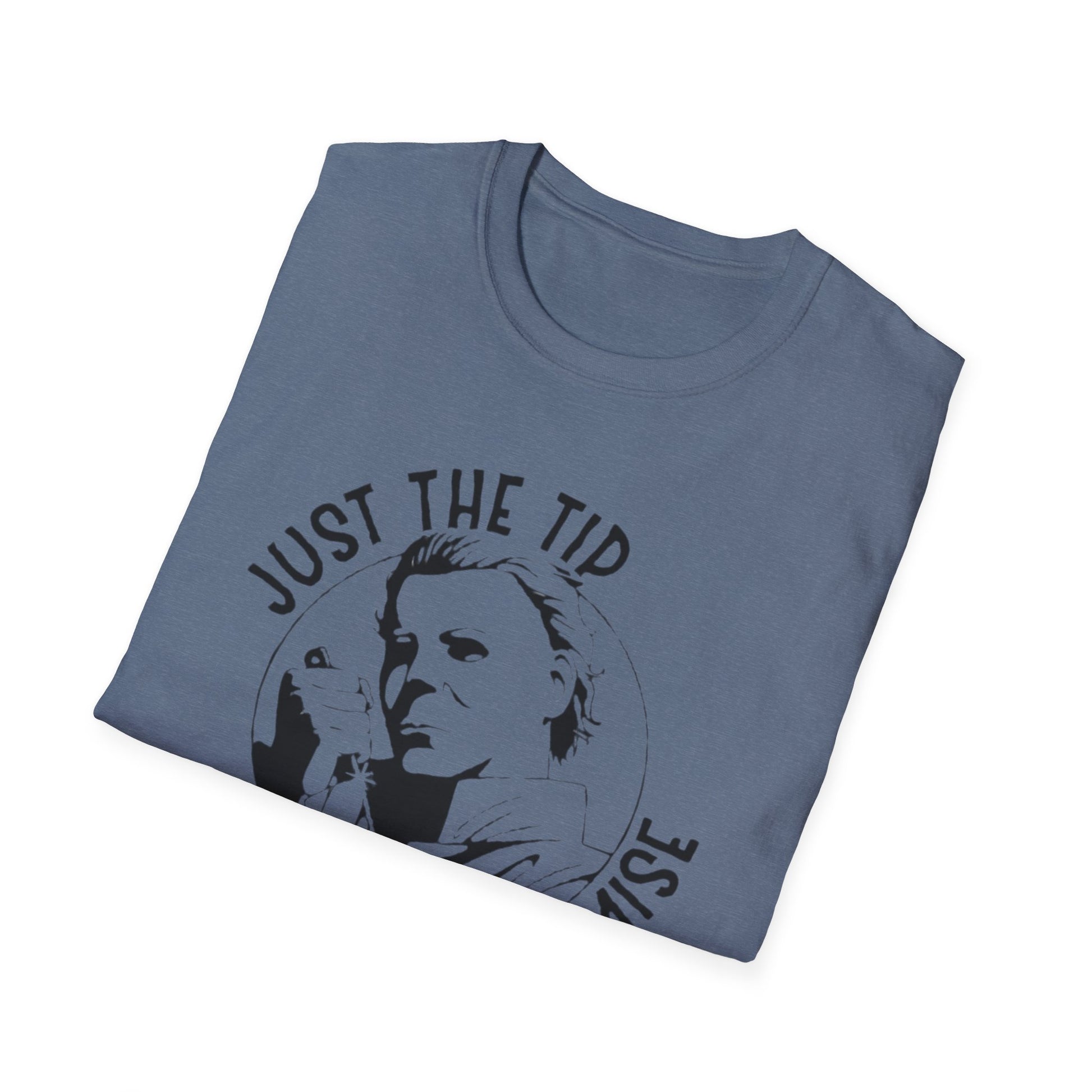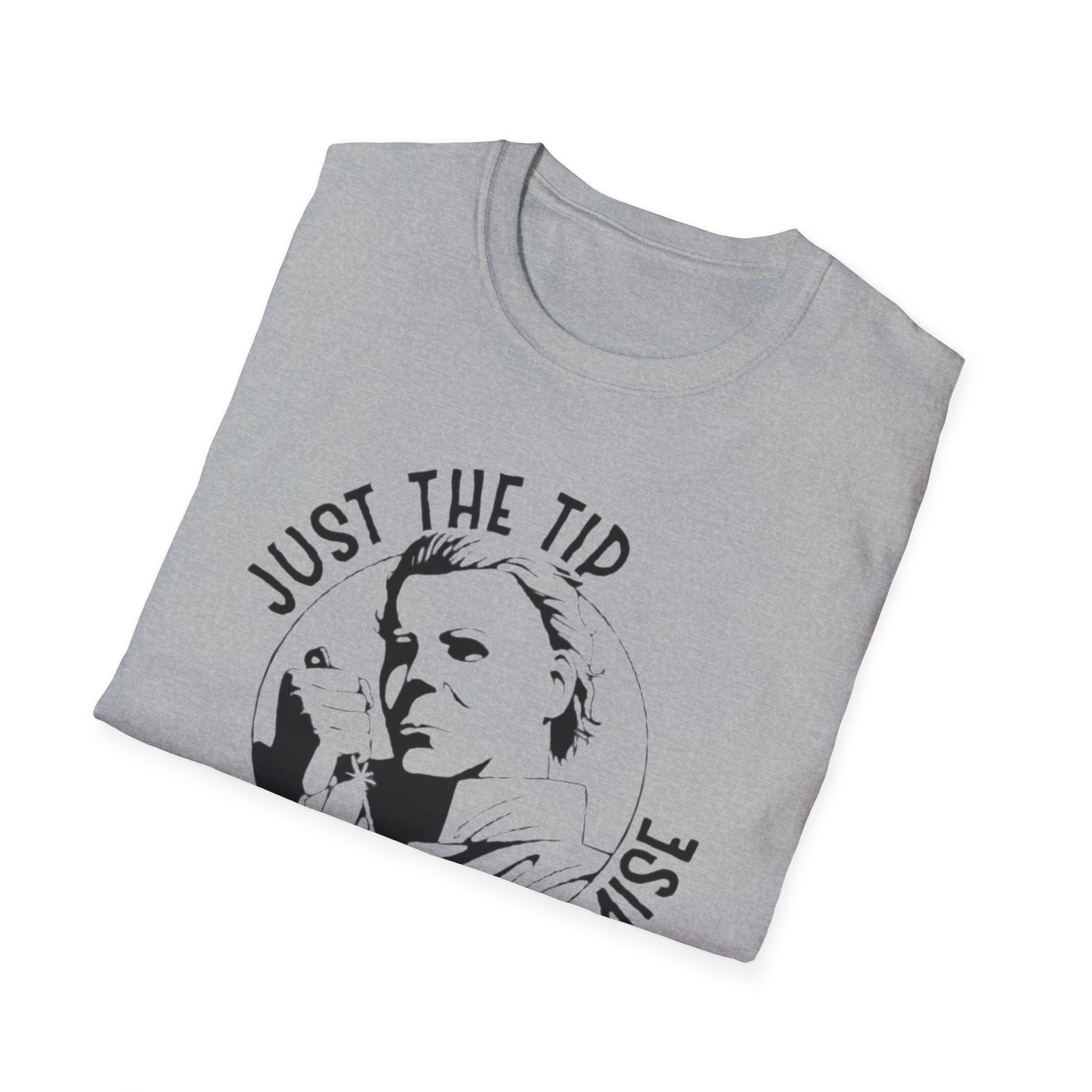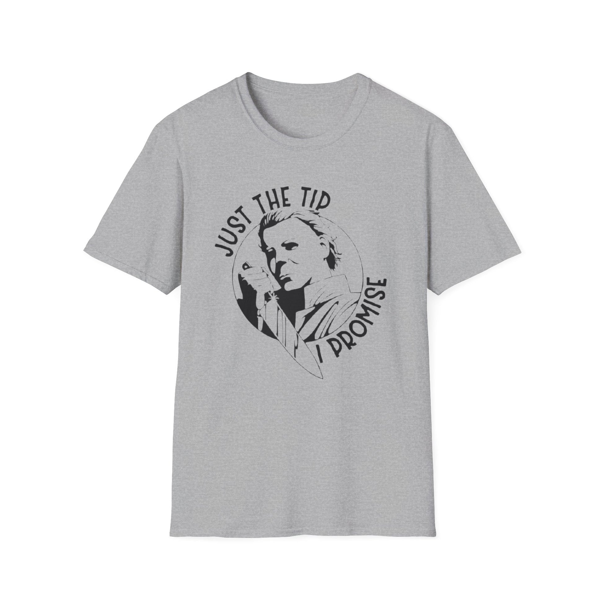 Sharp wit meets sharper blades in this slasher-humor mashup. Featuring horror legend brandishing his favorite pointy friend, this tee is perfect for fans who like their jokes like their horror icons—deadpan, twisted, and a little stabby.
