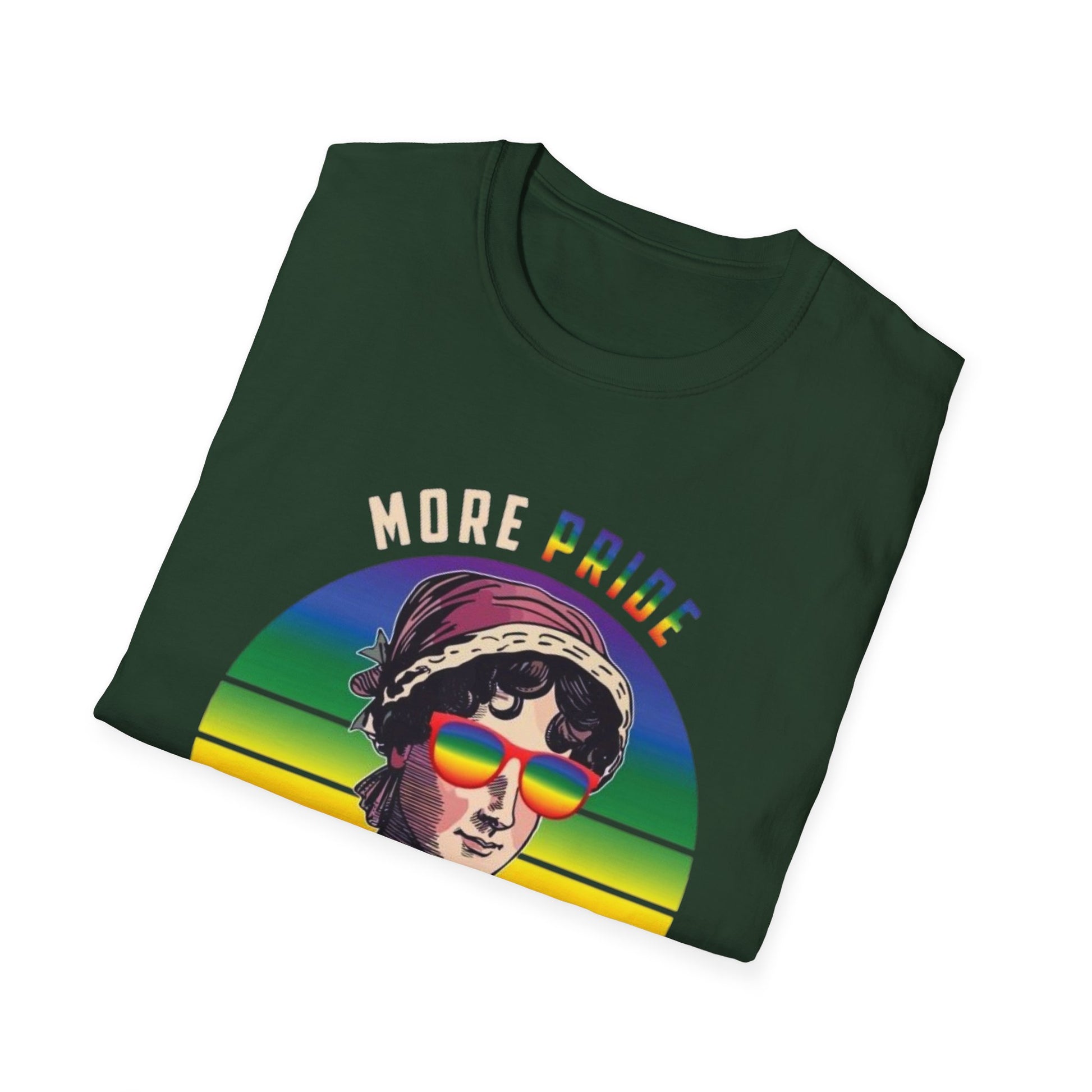 She’s got the quill, the glare, and the rainbow shades to prove a point: bigotry is boring, and Pride looks damn good in every century. This tee takes a vintage icon and turns her into a queer legend—complete with a retro rainbow sunset and the kind of side-eye that’s been judging society since before it was cool.