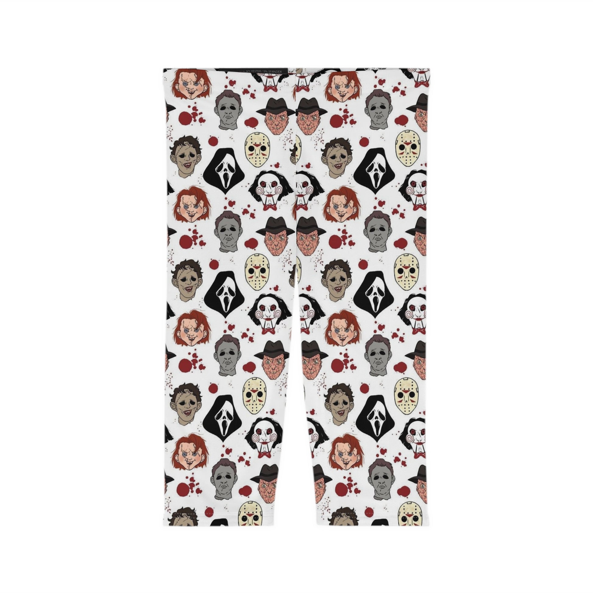 Cropped, creepy, and cut to thrill—these capri leggings bring the ultimate horror lineup to your legs with just the right splash of blood. From Halloween haunts to gym gains, this spooky squad of slasher legends is here for every sinister stretch and eerie errand.