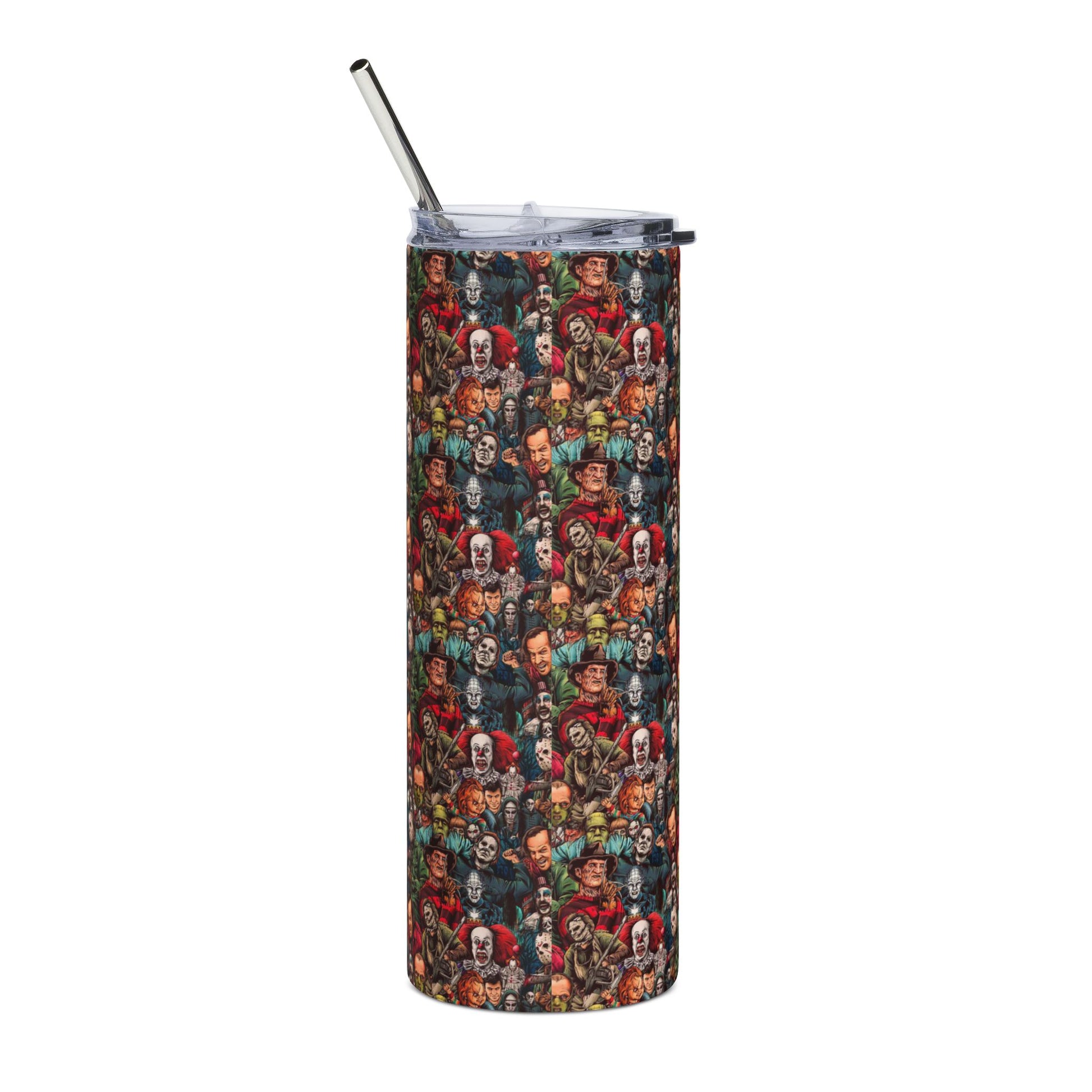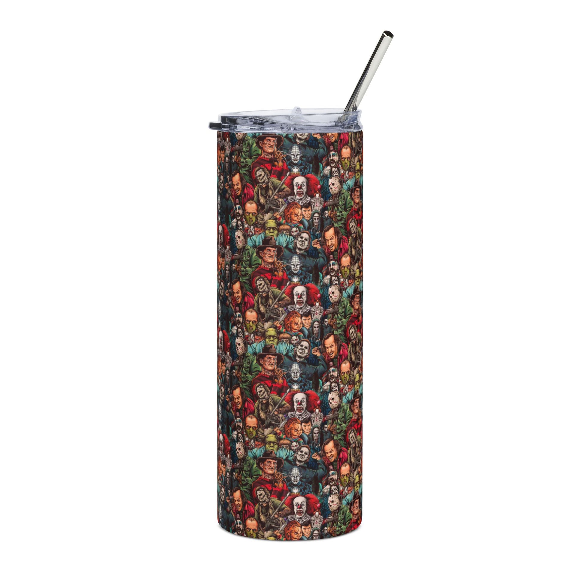 Fuel your caffeine cravings with a scream-worthy tumbler featuring a vivid collage of your favorite creepy characters. This stainless steel travel mug is equal parts terrifying and terrific—perfect for Halloween parties, spooky season… or simply letting everyone at the office know you’re not to be messed with before coffee.