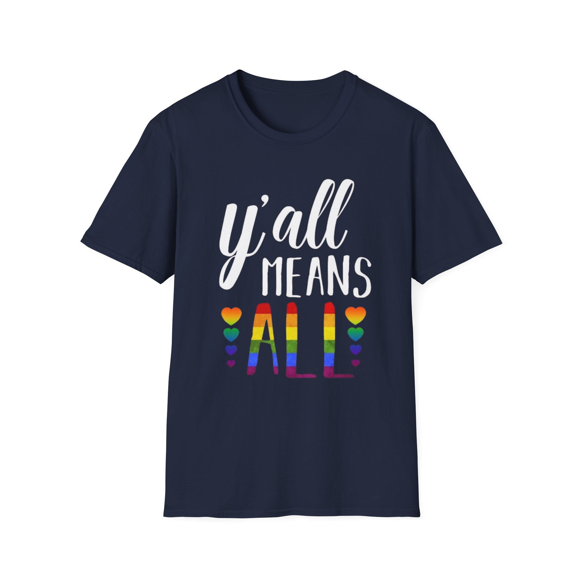 This ain’t just hospitality—it’s a whole damn declaration. Whether you’re deep in the heart of Dixie or marching through city streets, this rainbow-soaked tee makes one thing clear: everyone belongs. “Y’all Means All” isn’t just a phrase, it’s a promise—of equality, love, and leaving no one behind.